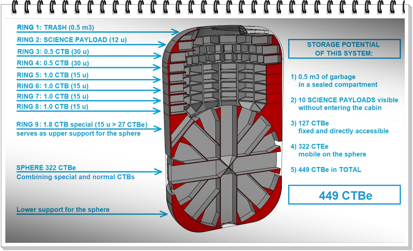 1) The "sphere" examples come from a previous challenge and I made them to illustrate the "types of sketches" that are useful when doing conceptual engineering. I have also given some examples in this regard for the specific case of "artificial gravity" but I did not want to go into them in depth to avoid presenting solutions that, in reality, I want the participants to come up with.