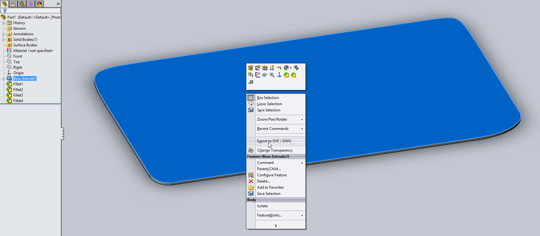 I was surfing around to find solution to a problem where SOLIDWORKS Export as DXF for some reason defaults to Front plane, giving me the wrong face in the DXF file - and then I noticed this thread.