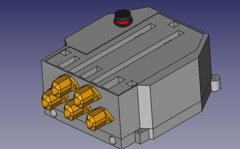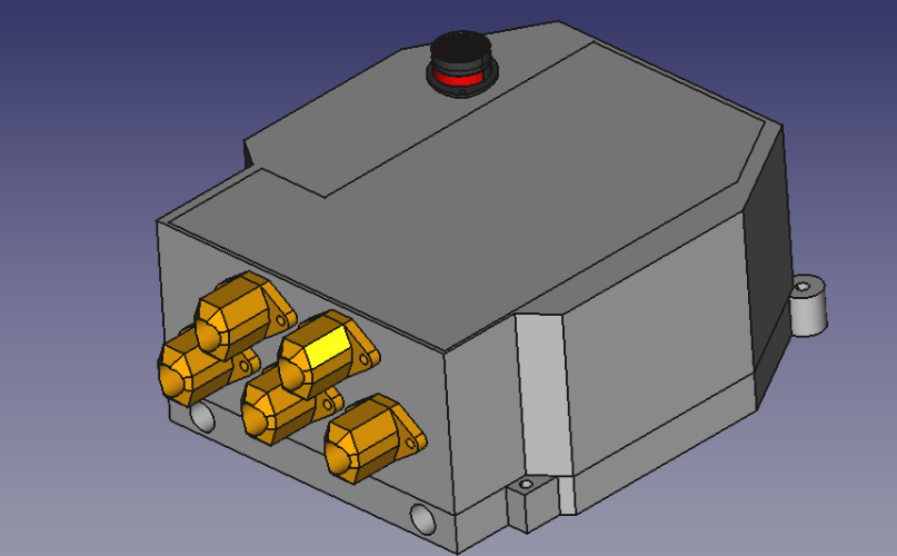 Tapi namanya juga desain doang (Cuma Mimpi), sekalian dong pake yang versi bagusnya. Saya pake produk HVPT yang dibuat Amphenol, product mereka udah jamin sampe enclosure IP67. Tapi mereka gak menyediakan 3D modelsnya, Makanya saya desain asal menyesuaikan dimensinya aja di modelnya :D