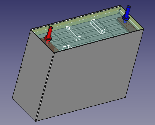 Sementara baru buat baterainya, dan masih masih proses sampai saat ini. Saya menggunakan aplikasi FreeCAD, dan baru belajar dalam beberapa bulan ini. Semoga bisa Istiqomah
