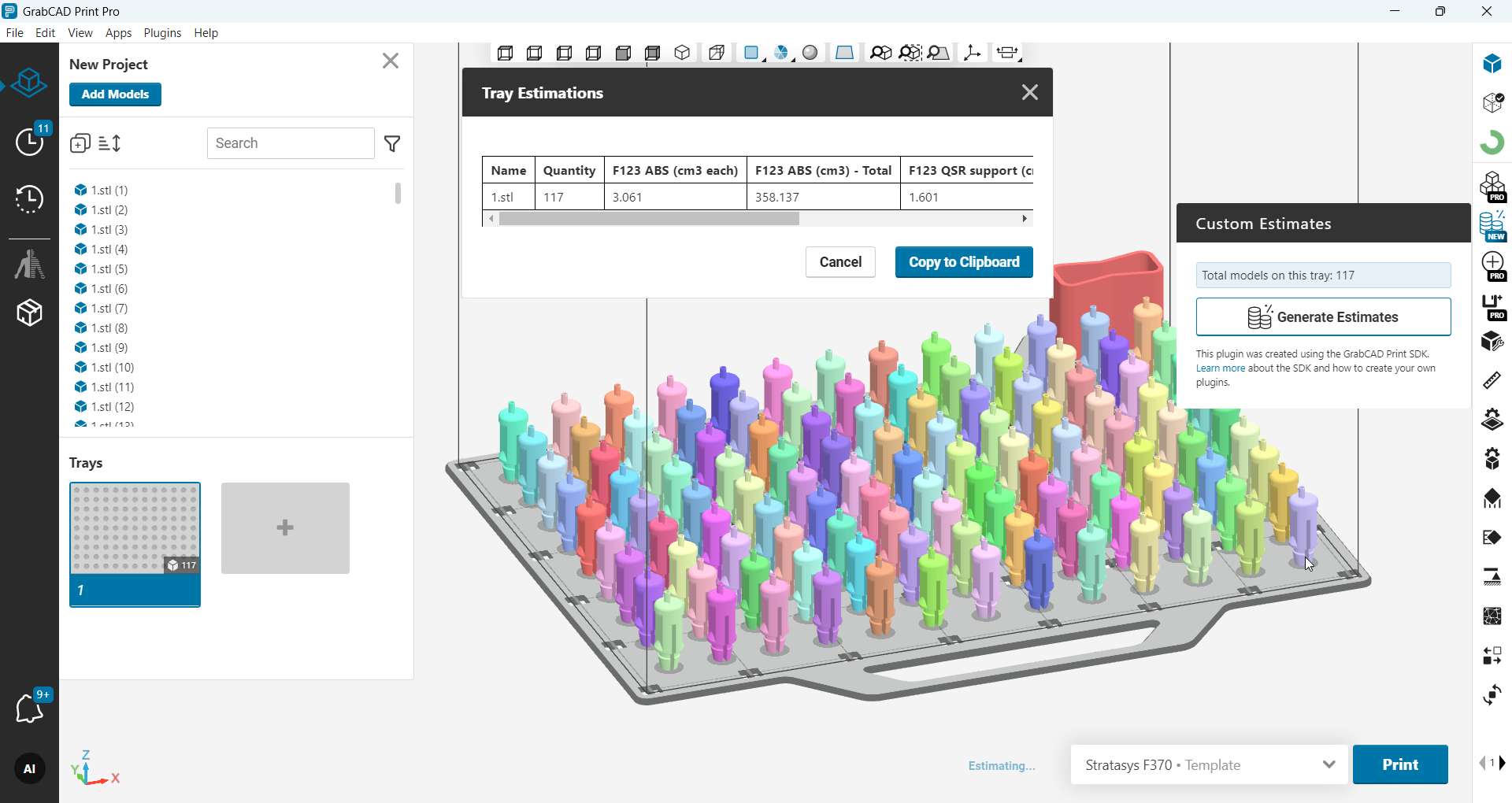 Generate FDM per-part estimates with custom columns and copy values into clipboard (FDM Only).