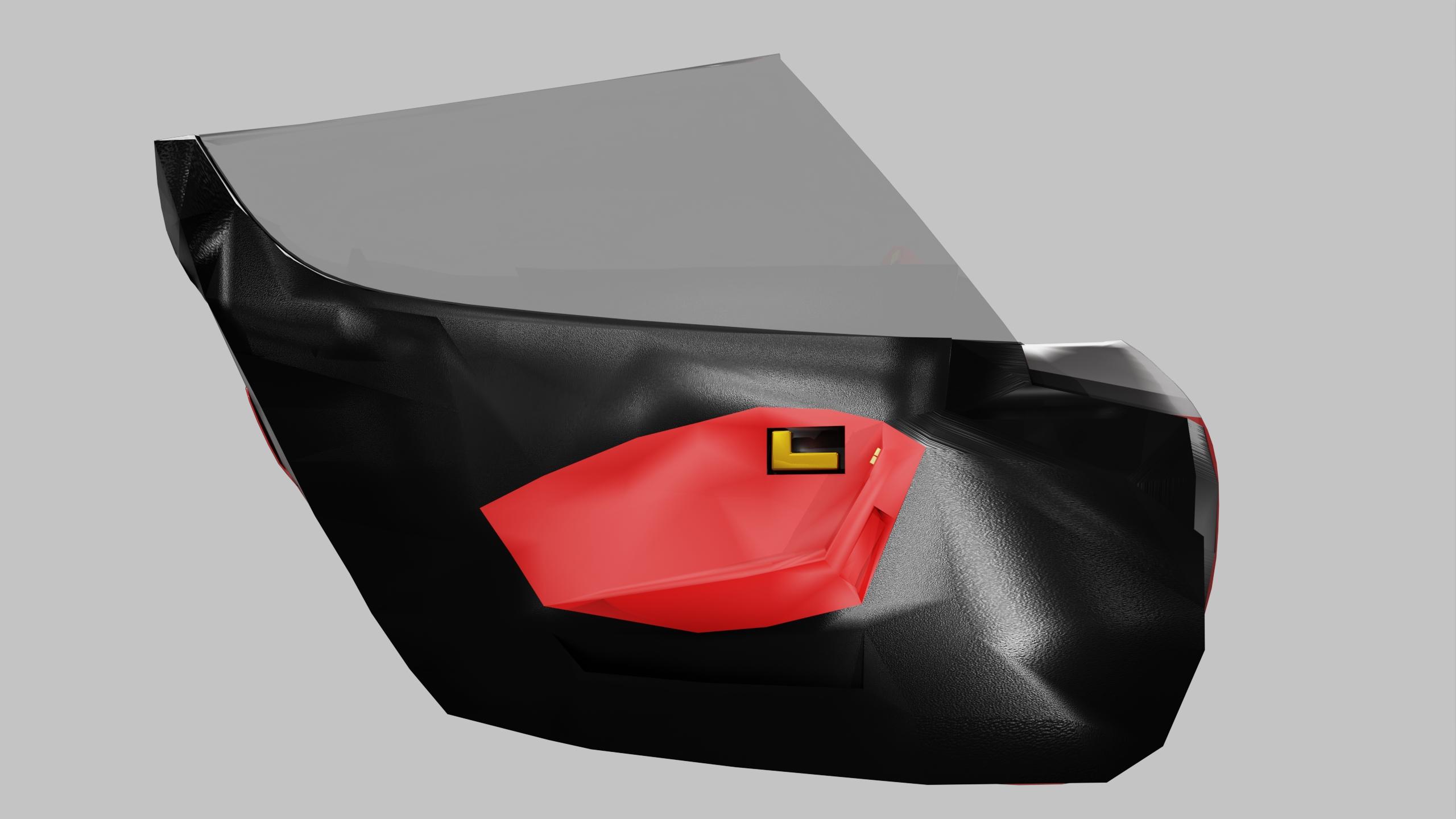 The car has a vertical lift door, also known as a "gull wing". It opens vertically upwards, forming an angle of about 90 degrees with the car body. This not only adds technological charm to the car, but also makes the car convenient to get into. An original mechanism is used to implement the vertical opening of the door. To ensure safety and prevent accidental lowering of the door, a special locking mechanism is installed in it. This mechanism is activated in the vertical position of the door. The door is also equipped with a door opening limiter. The door hinges on which the door is suspended allow you to adjust their position relative to the monocoque openings. The door is made with one lowering glass controlled by an electric drive. The door window is safe, polished, made of three layers. It is installed in the door with rubber seals. The car is exposed to air flow not only from the front, but also from the sides. The rounded window not only helps mix air flows in the vicinity of the windshield, but also allows the air flow washing the sides of the body to move the point of flow breakdown closer to the rear of the car. The outer door handle is aerodynamic and is located inside the end face. The door is made of carbon fiber.