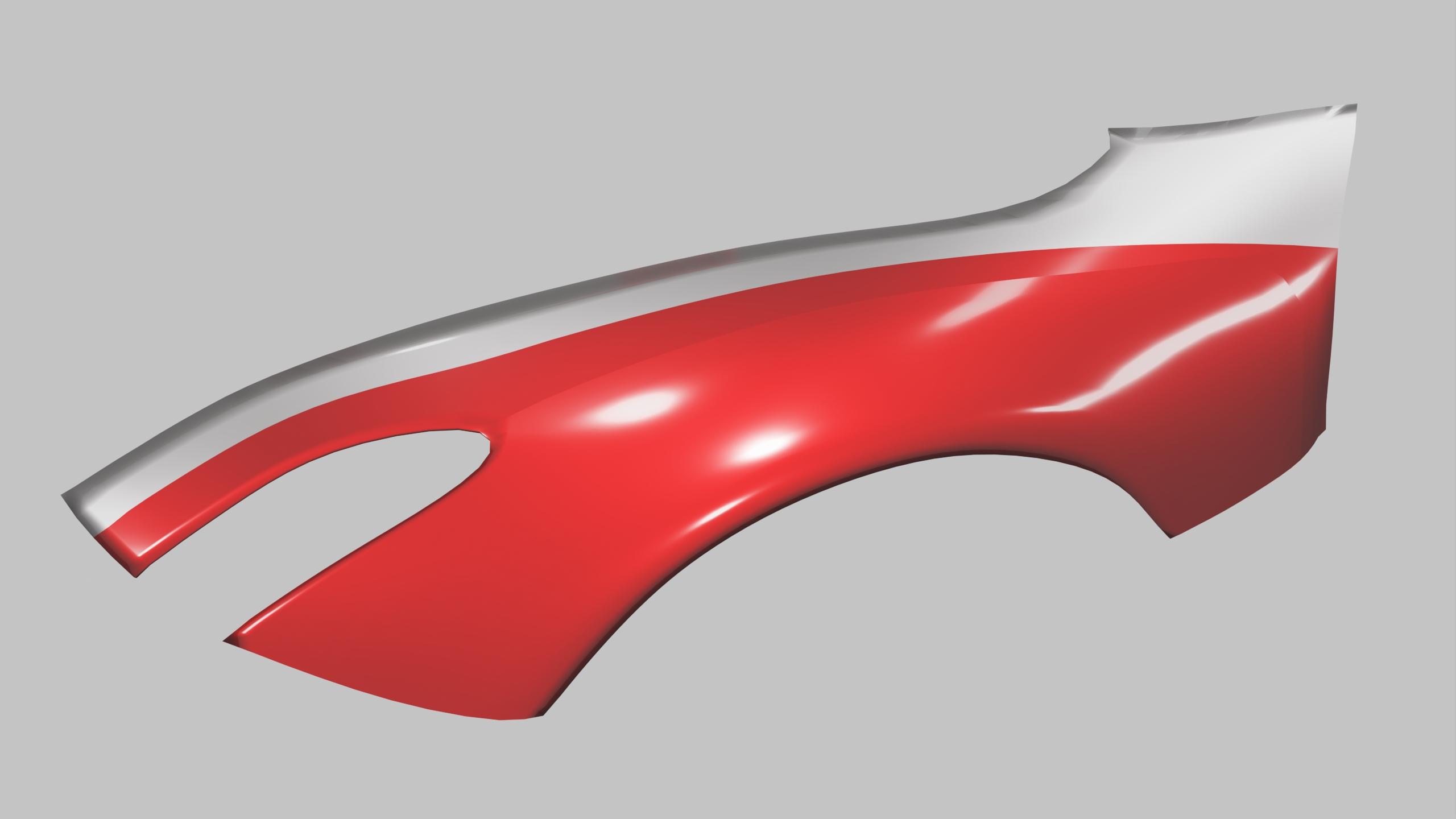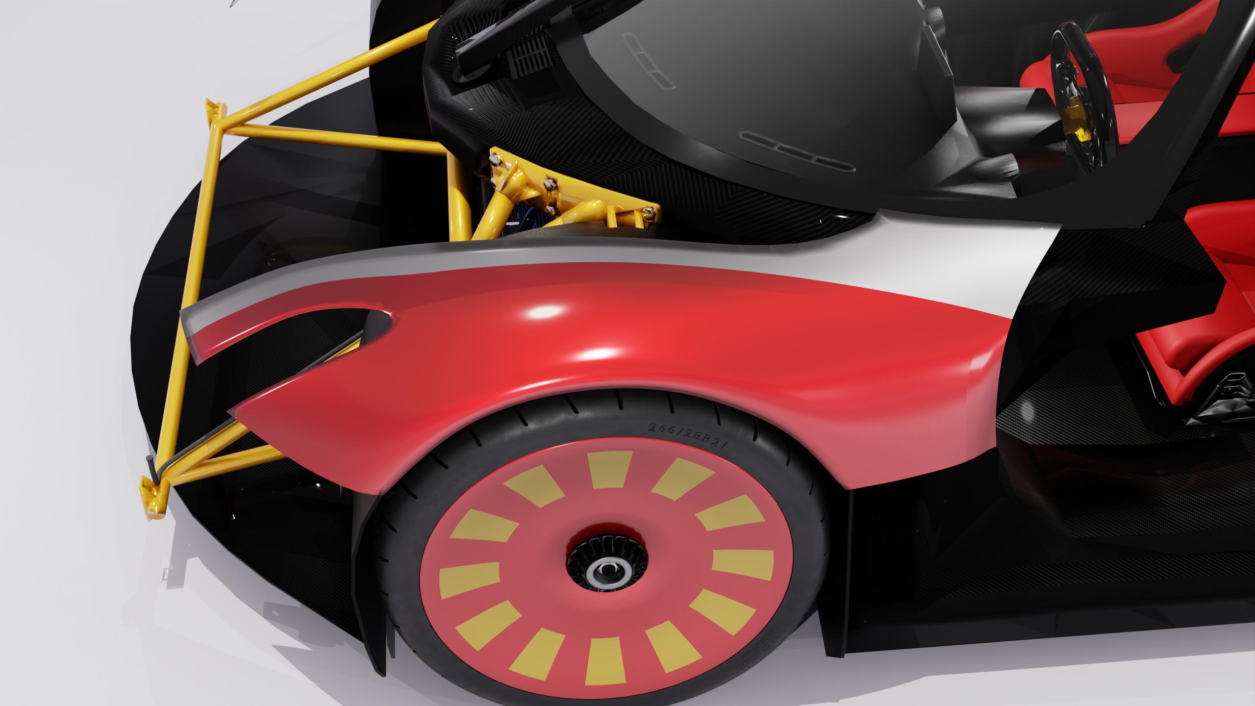 The front wing is located above the wheel arches. It is fixed, attached to the frame and monocoque with screws. The wing is made of carbon fiber using vacuum infusion. There are no sharp corners on the surface of the part. Because the places of sharp corners have low strength, they are difficult to attach, and they are dangerous during installation.