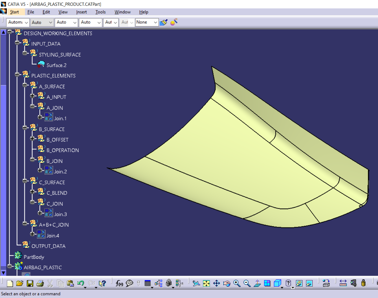 Geometrical Sets | Close Volume | Automotive product design | Airbag | Interior trim | CATIA V5