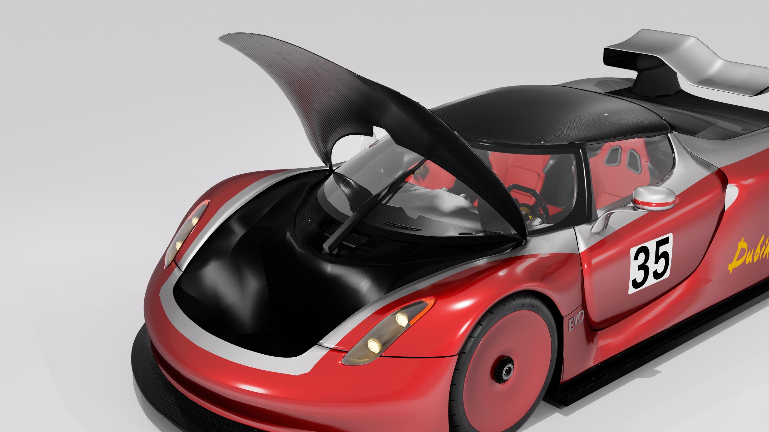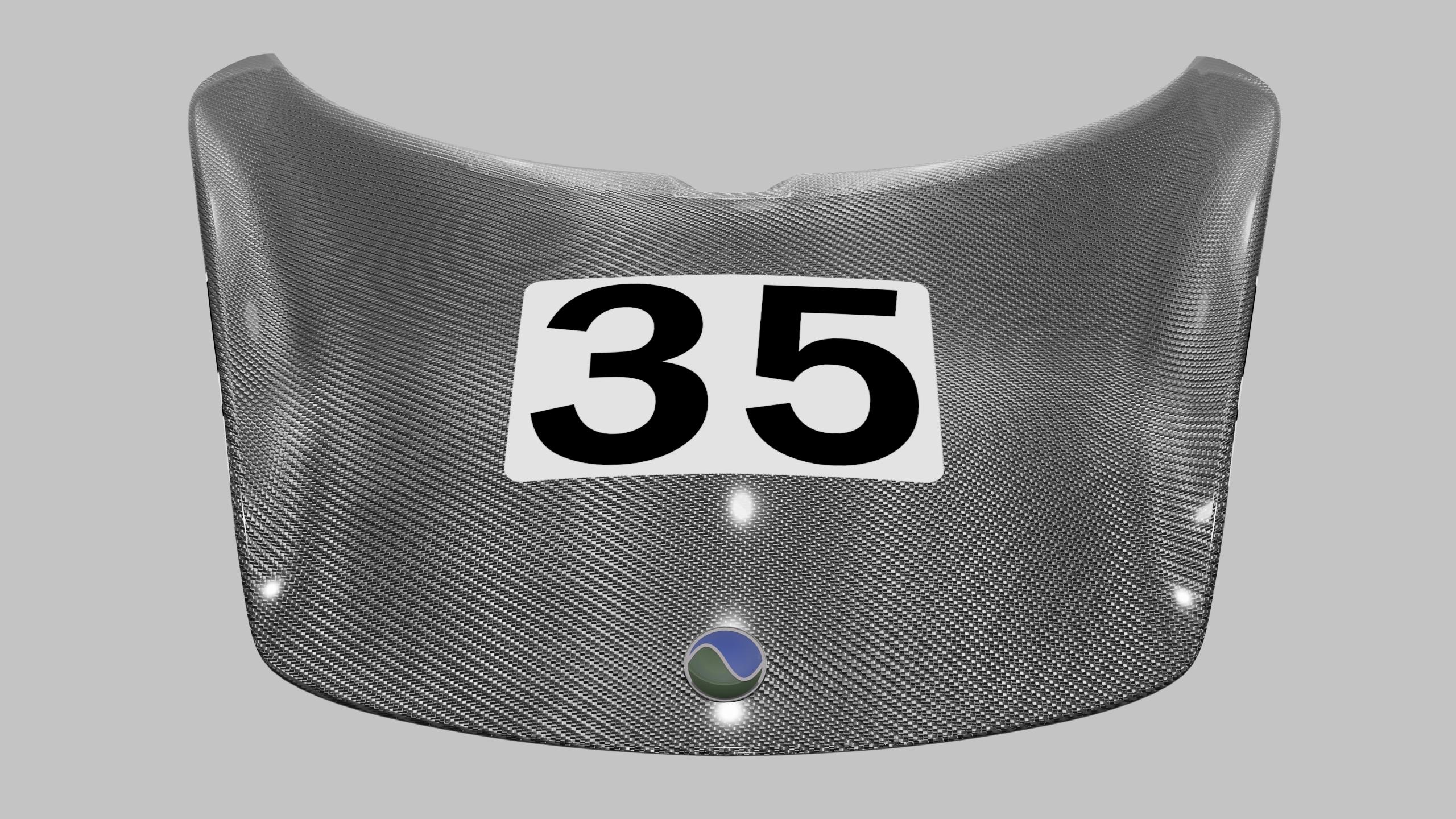 The hood is a part of the car body. It prevents moisture, dust, and dirt from getting inside the car. The hood provides easy access to the front trunk, engine, and suspension. It is designed to improve the aerodynamics of the car by reducing air resistance. The hood consists of outer and inner panels connected with glue. The outer panel is smooth and made of carbon fiber prepreg. The inner panel is also made of carbon fiber prepreg but has stiffening ribs. The hood is attached to the monocoque with two internal hinges that allow you to adjust its position relative to the opening of the front luggage compartment. The hood opens backwards in the direction of the car. Its front part rests on rubber buffers. In the front part of the hood there is a lock with a hook that prevents the hood from opening spontaneously while driving. The lock drive is electronic and mechanical. The lock is unlocked from inside the cabin using a button on the multimedia display screen. In the open position, the hood is fixed with a special carbon fiber rod-type stop.