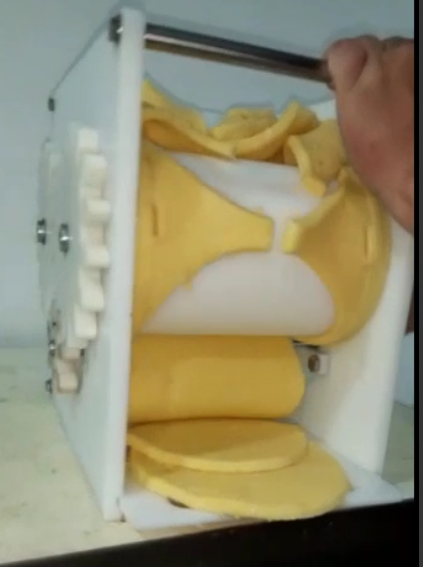 Buenas noches, estoy interesado en poder diseñar una maquina similar al archivo adjunto, es una maquina manual para hacer arepas, me gustaría realizarle algunas mejoras, tal vez agregando una banda transportadora que vaya vinculada con la manivela, pero aún tengo problemas en los cálculos. Si alguno me pudiera ayudar en mi proyecto o tal vez dándome alguna clase para hacer los respectivos cálculos (una guía) estaría muy agradecido y estaríamos mirando la forma de pago. Mi número es +57 322 403 9280. ¡Toda ayuda sirve! gracias