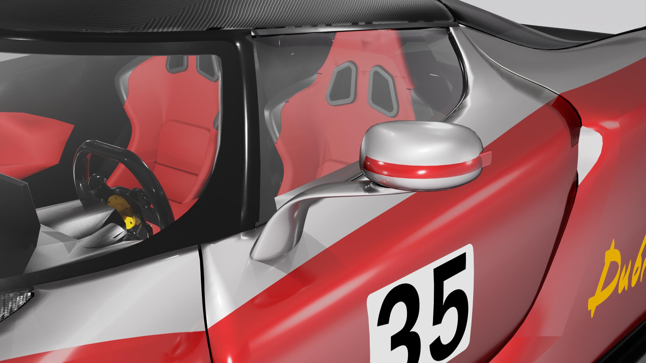 The side mirror is located on both sides of the car. It is designed to provide the driver with a view of the rear and sides, which is important for safety on the track and the convenience of manual control. The mirror differs from traditional mirrors on road cars and has a specific design aimed at minimizing aerodynamic drag and creating an effective view. The mirror is adjustable so that the driver can adjust it to individual preferences. The shape of the mirror provides the widest possible viewing angle to track the movement of other race participants. A video camera is built into the mirror housing. The image from the camera is transmitted to the screen or glasses of the driver. The mirror is made of lightweight and durable carbon fiber.