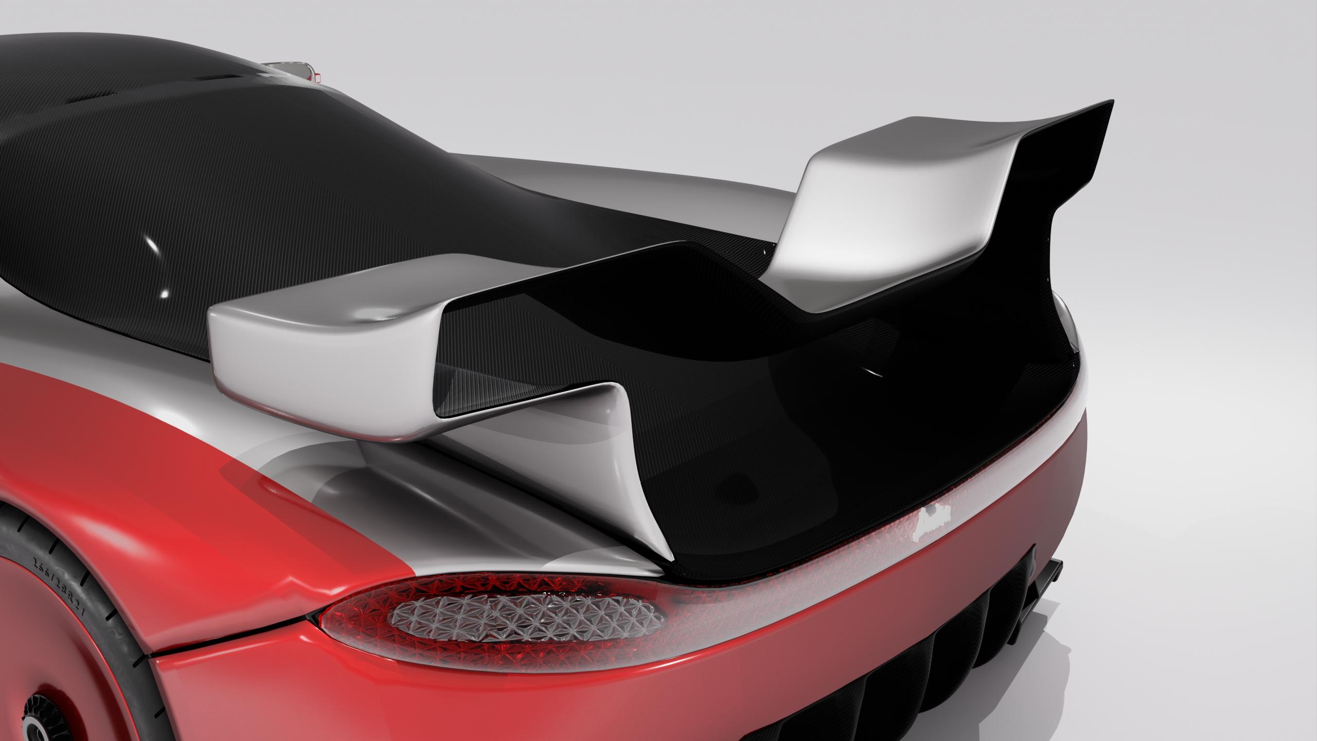 The car has aerodynamic stability during roll, pitching and yaw. Roll stability is ensured by the location of the center of pressure close to the longitudinal axis of the car. The value of the longitudinal moment, leading to a change in wheel loading with increasing speed, is determined by the distribution of lifting forces acting on the car. The spoiler is used to create the upper contour of the stabilizer, reducing aerodynamic drag, causes negative lifting force on the rear wheels, and this helps to increase the longitudinal stability of the car. A spoiler is an aerodynamic device designed to control the air flow around the car in order to increase the adhesion of the wheels to the road. The spoiler is installed on the rear trunk door. It creates the necessary pressure on the shock absorbers of the rear suspension. It has minimal air resistance and does not create unnecessary turbulence. Due to the pressure from the spoiler on the rear of the car, the adhesion of the rear wheels to the road increases. Wheel adhesion increases braking efficiency. The downforce from the spoiler reduces lift and stabilizes the car. The rear of the car does not lose grip and the car does not skid. It begins to create effective downforce at a speed of 100 km / h. It is rational to use it on a car with an average speed exceeding 150 km / h. At low speed, there is a negative effect from air resistance and the weight of the spoiler. The spoiler is also called a wing because of its main function to create a force directed downwards, not upwards. The angle of attack of the spoiler has a significant impact on its effectiveness. The magnitude of the downforce depends on the angle of attack of the wing. The greater the angle of attack, the greater the downforce, but the angle of attack has a limit. The height of the spoiler installation is important to achieve the optimal balance between stability and grip. The spoiler is made of carbon fiber. It is attached to the rear trunk lid using mounting screws. The screws are screwed into the bases of the spoiler legs from the inside of the door. The area of ββββthe working surface of the spoiler S = 0.6 m2. Angle of attack Ξ± = 40 Β°. Downforce F = 1111 Newton or F = 111 kg at speed Ο = 200 km/h.