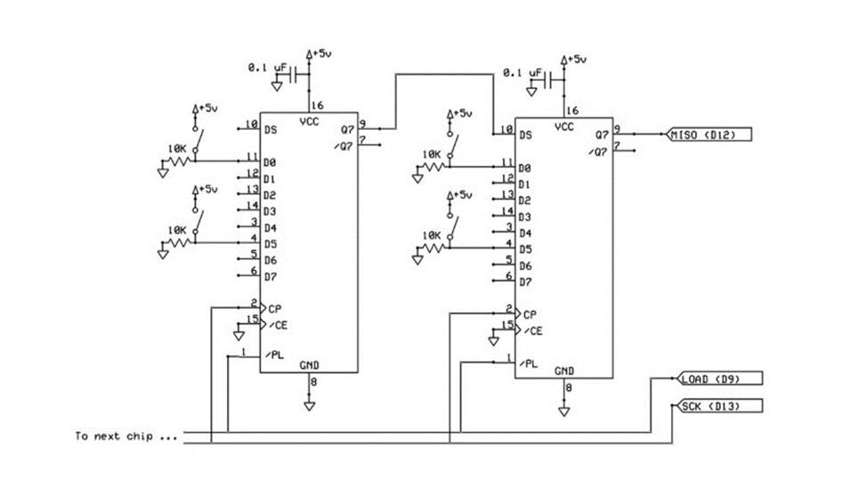 Scheme of connection of steering buttons to shift registers